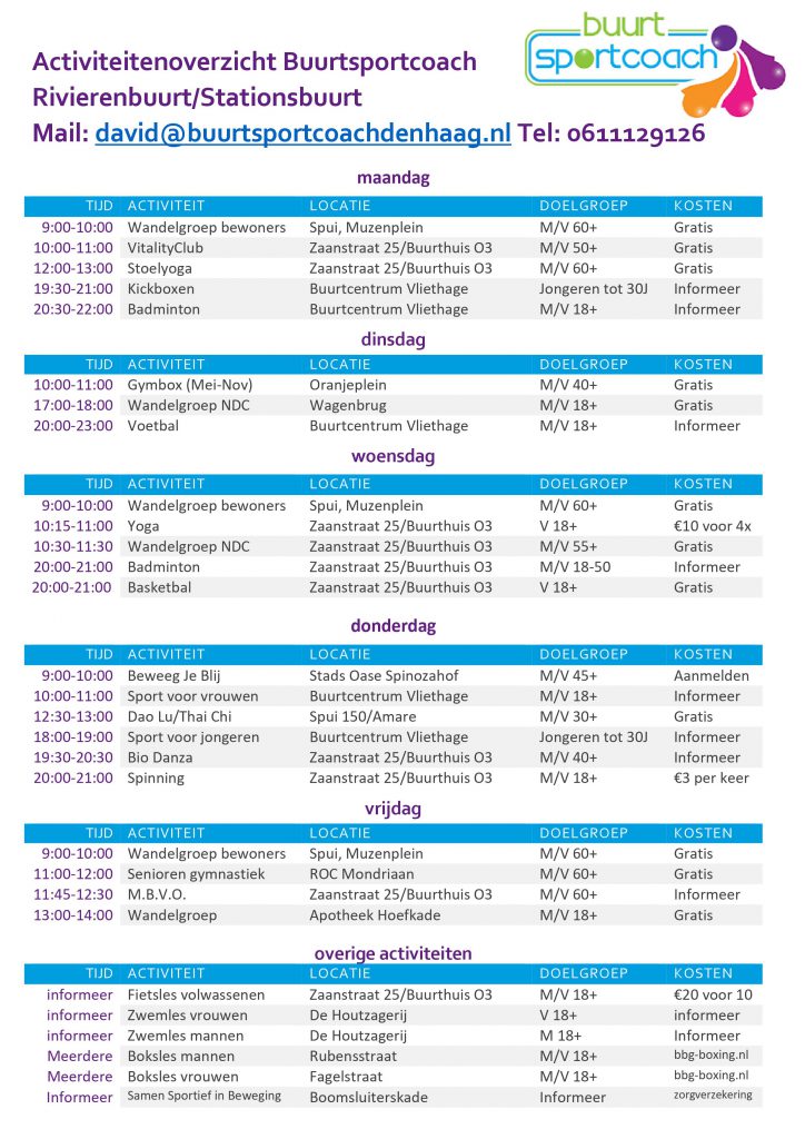Hieronder vindt u het meest actuele beweegaanbod van de Rivierenbuurt & Stationsbuurt. Bent u op zoek naar iets anders, neem dan contact op met de buurtsportcoach, dan zoeken we samen verder.